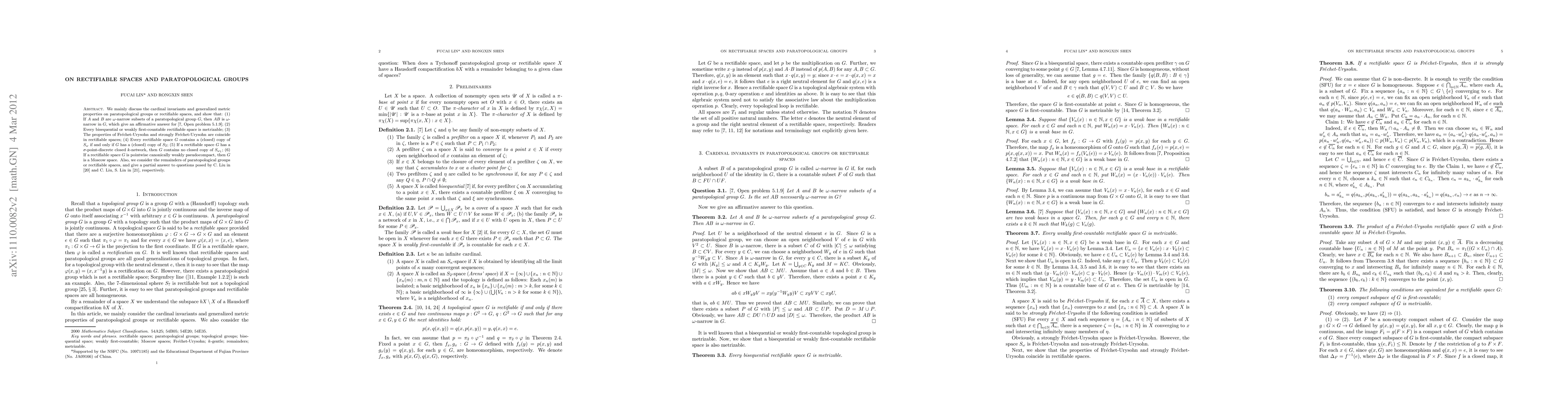 This paper explores cardinal invariants and generalized metric properties in paratopological groups and rectifiable spaces, proving that $\omega$-narrow subsets of paratopological groups maintain their $\omega$-narrowness under multiplication. It also establishes metrizability for bisequential or weakly first-countable rectifiable spaces and discusses the equivalence of Fr$\acute{e}$chet-Urysohn and strongly Fr$\acute{e}$chet-Urysohn properties in rectifiable spaces.