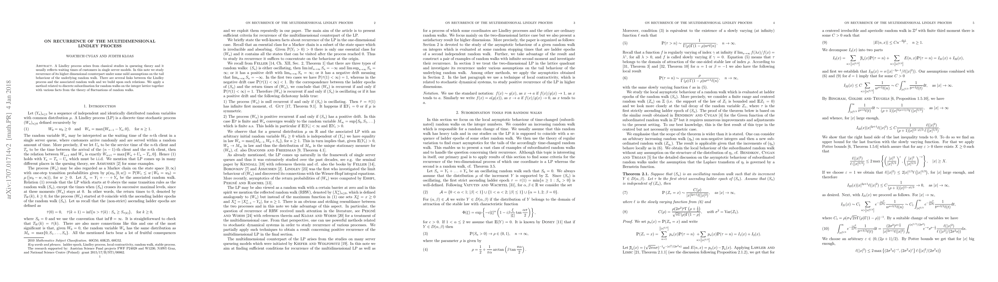 A Lindley process arises from classical studies in queueing theory and it usually reflects waiting times of customers in single server models. In this note we study recurrence of its higher dimensional counterpart under some mild assumptions on the tail behaviour of the underlying random walk. There are several links between the Lindley process and the associated random walk and we build upon such relations. We apply a method related to discrete subordination for random walks on the integer lattice together with various facts from the theory of fluctuations of random walks.
