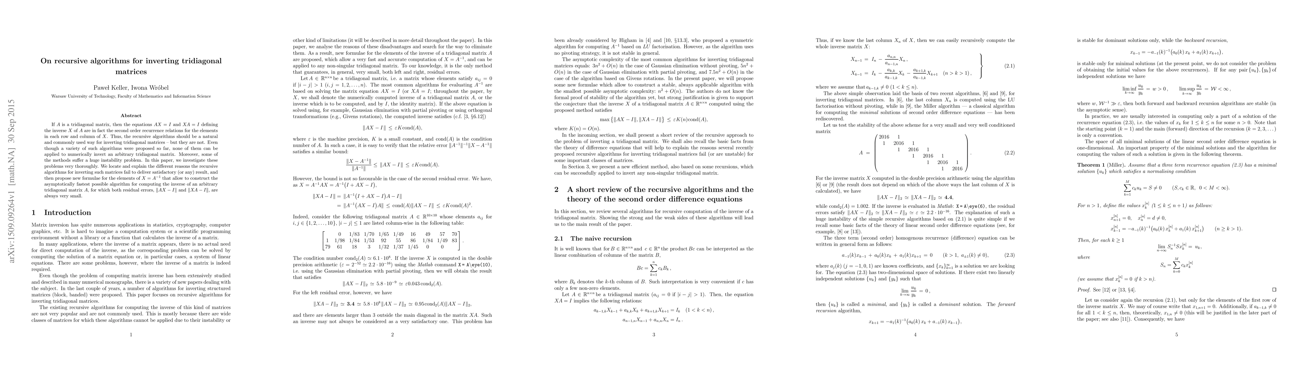 This paper examines the failure of existing recursive algorithms for inverting tridiagonal matrices, identifying instability issues and proposing new, more stable formulae to construct an asymptotically fastest algorithm that ensures minimal residual errors.
