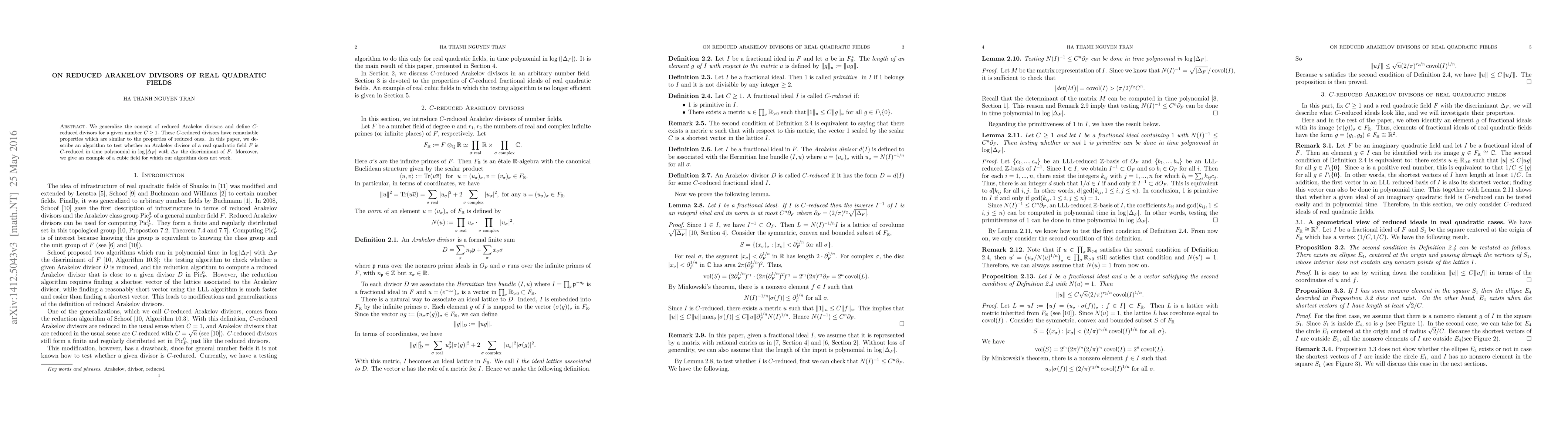 This paper generalizes the concept of reduced Arakelov divisors to define $C$-reduced divisors for real quadratic fields, presenting a polynomial-time algorithm to test their properties. An example of a cubic field is provided where the algorithm fails.