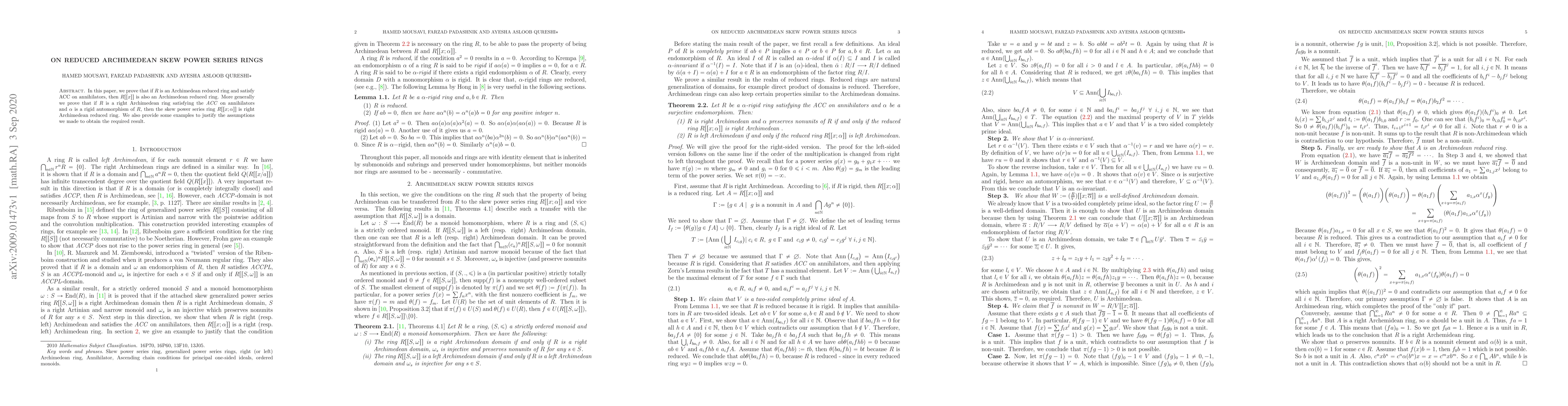 This paper establishes that if $R$ is an Archimedean reduced ring with the ascending chain condition (ACC) on annihilators, then the formal power series ring $R[[x]]$ retains the Archimedean reduced properties. It further proves that the skew power series ring $R[[x;\alpha]]$ remains right Archimedean reduced under similar conditions.