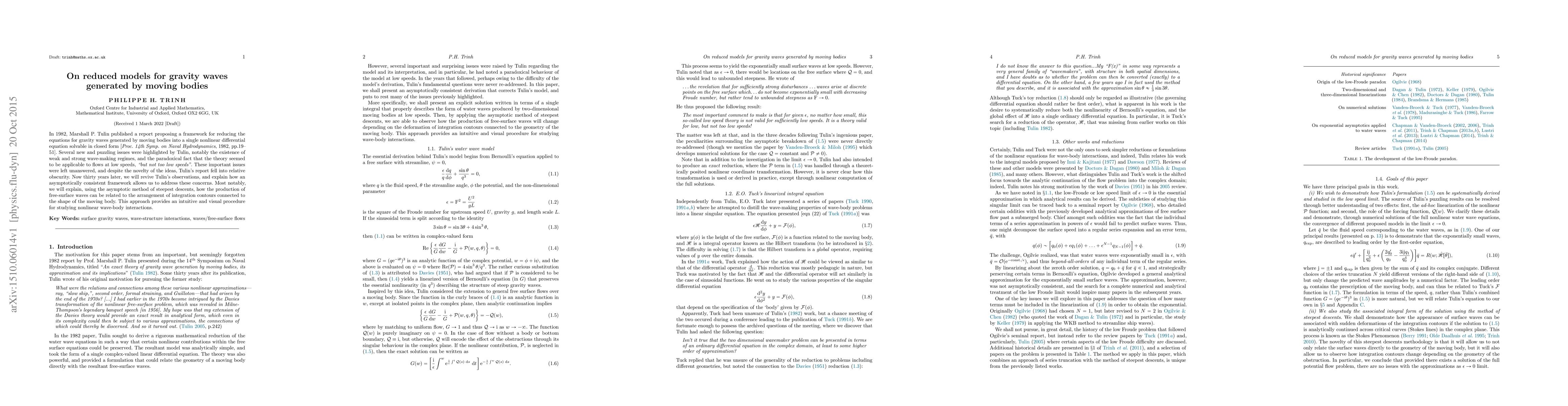 In 1982, Marshall P. Tulin published a report proposing a framework for reducing the equations for gravity waves generated by moving bodies into a single nonlinear differential equation solvable in closed form [Proc. 14th Symp. on Naval Hydrodynamics, 1982, pp.19-51]. Several new and puzzling issues were highlighted by Tulin, notably the existence of weak and strong wave-making regimes, and the paradoxical fact that the theory seemed to be applicable to flows at low speeds, "but not too low speeds". These important issues were left unanswered, and despite the novelty of the ideas, Tulin's report fell into relative obscurity. Now thirty years later, we will revive Tulin's observations, and explain how an asymptotically consistent framework allows us to address these concerns. Most notably, we will explain, using the asymptotic method of steepest descents, how the production of free-surface waves can be related to the arrangement of integration contours connected to the shape of the moving body. This approach provides an intuitive and visual procedure for studying nonlinear wave-body interactions.
