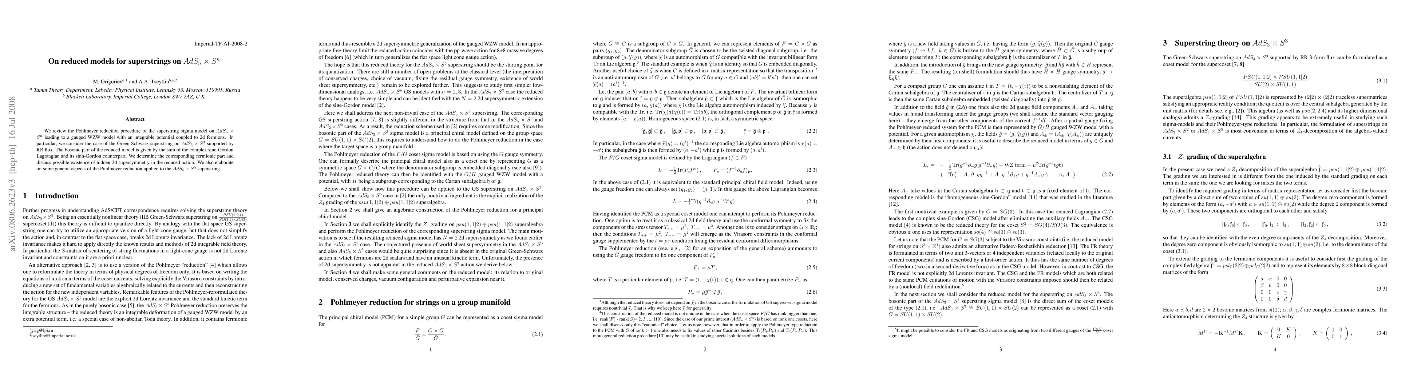 This paper reviews the Pohlmeyer reduction of the superstring sigma model on AdS_n x S^n, resulting in a gauged WZW model coupled to 2d fermions, with a focus on the Green-Schwarz superstring on AdS_3 x S^3. It explores the potential for hidden 2d supersymmetry in the reduced action.