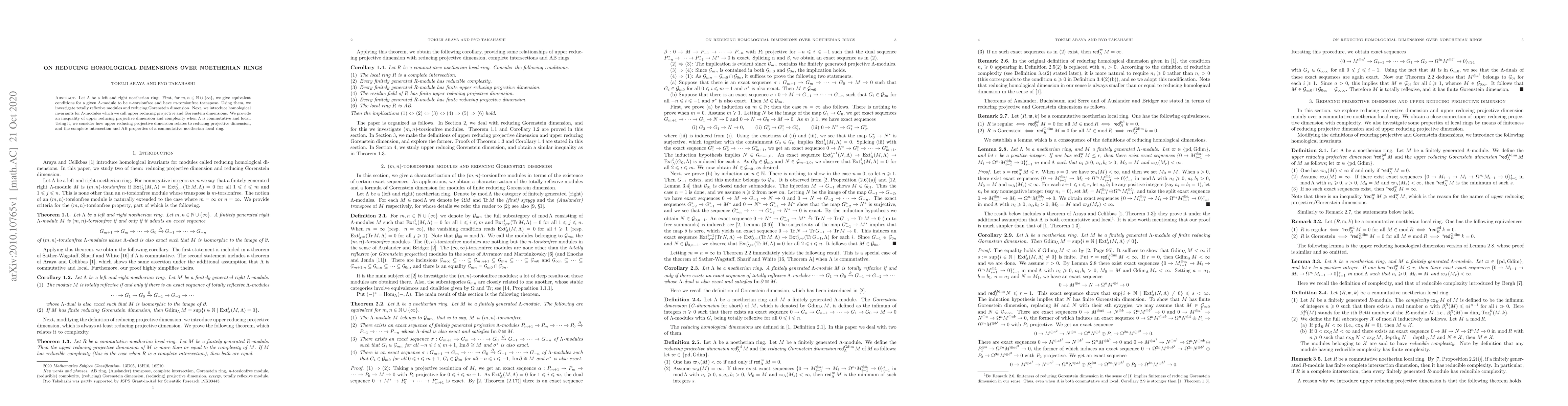 Let $\Lambda$ be a left and right noetherian ring. First, for $m,n\in\mathbb{N}\cup\{\infty\}$, we give equivalent conditions for a given $\Lambda$-module to be $n$-torsionfree and have $m$-torsionfree transpose. Using them, we investigate totally reflexive modules and reducing Gorenstein dimension. Next, we introduce homological invariants for $\Lambda$-modules which we call upper reducing projective and Gorenstein dimensions. We provide an inequality of upper reducing projective dimension and complexity when $\Lambda$ is commutative and local. Using it, we consider how upper reducing projective dimension relates to reducing projective dimension, and the complete intersection and AB properties of a commutative noetherian local ring.