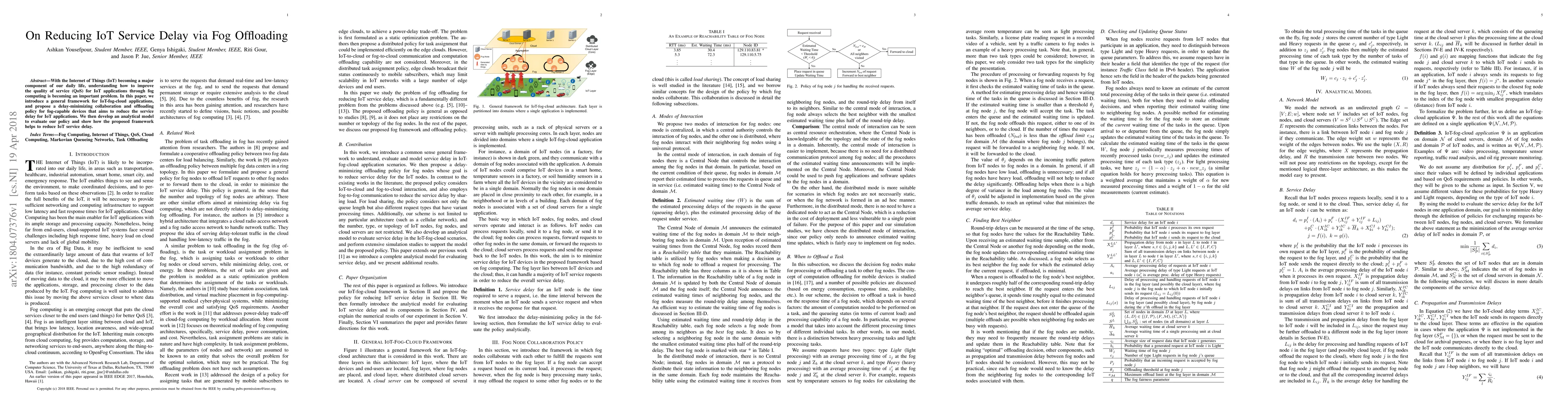 This paper proposes a framework for IoT-fog-cloud applications and introduces a delay-minimizing offloading policy for fog-capable devices to enhance IoT service quality. An analytical model demonstrates the effectiveness of the proposed framework in reducing IoT service delays.
