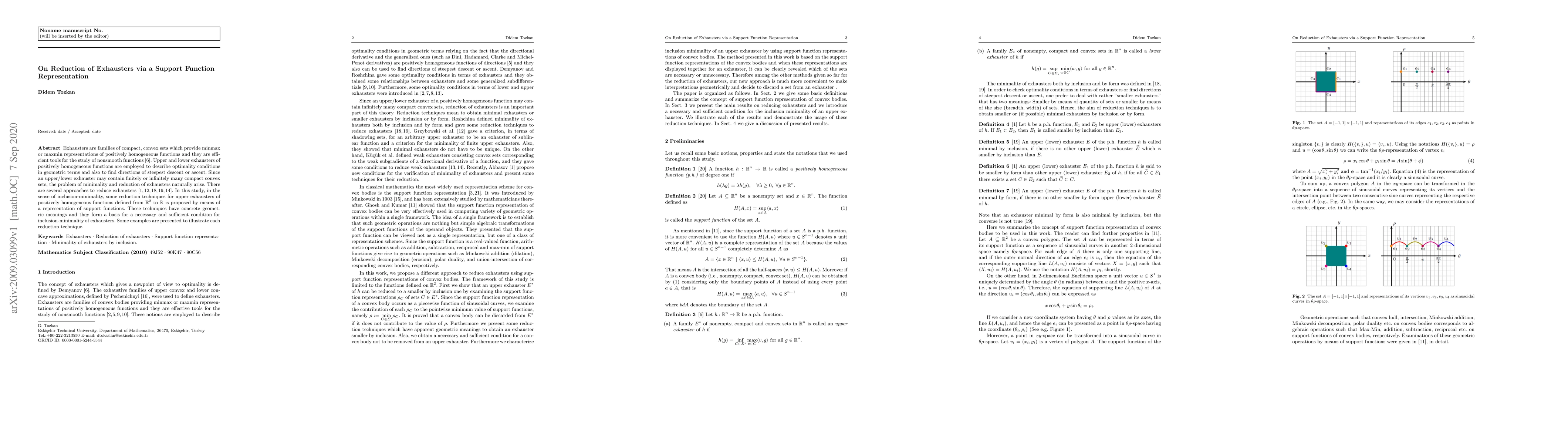 This paper proposes reduction techniques for upper exhausters of positively homogeneous functions using support function representation, aiming for inclusion-minimality. These techniques provide geometric insights and form a basis for necessary and sufficient conditions for minimality, illustrated with examples.