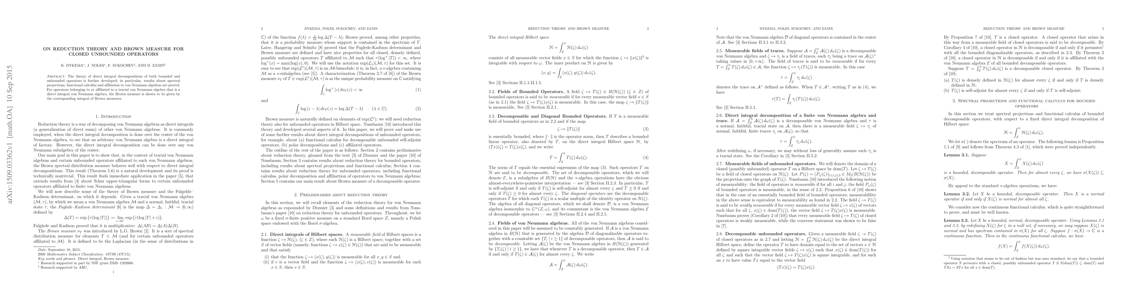 This paper develops the theory of direct integral decompositions for both bounded and unbounded operators, focusing on spectral projections, functional calculus, and operator affiliation to von Neumann algebras. It also establishes that the Brown measure for operators affiliated with a tracial von Neumann algebra is an integral of corresponding Brown measures.