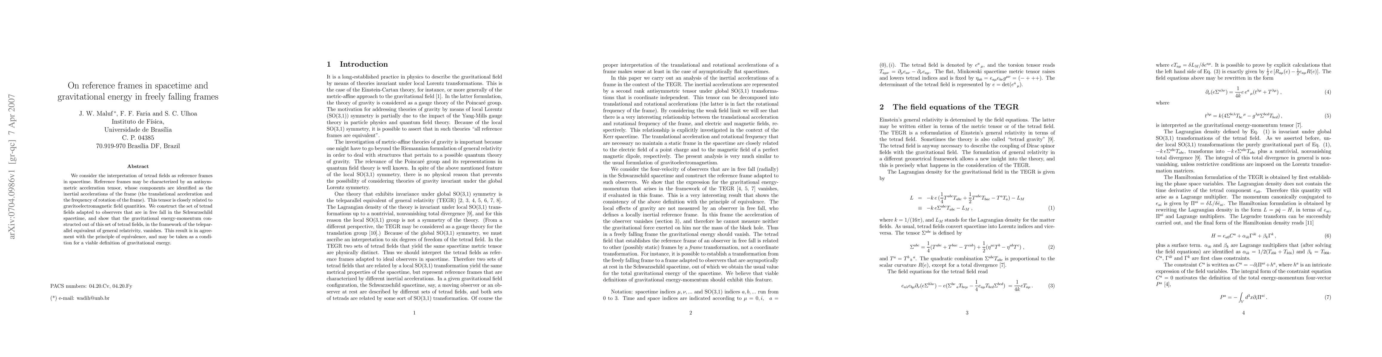 This paper explores tetrad fields as reference frames in spacetime, linking them to gravitoelectromagnetic fields and inertial accelerations. It shows that gravitational energy-momentum vanishes for freely falling frames in Schwarzschild spacetime, aligning with the principle of equivalence and suggesting a viable definition of gravitational energy.