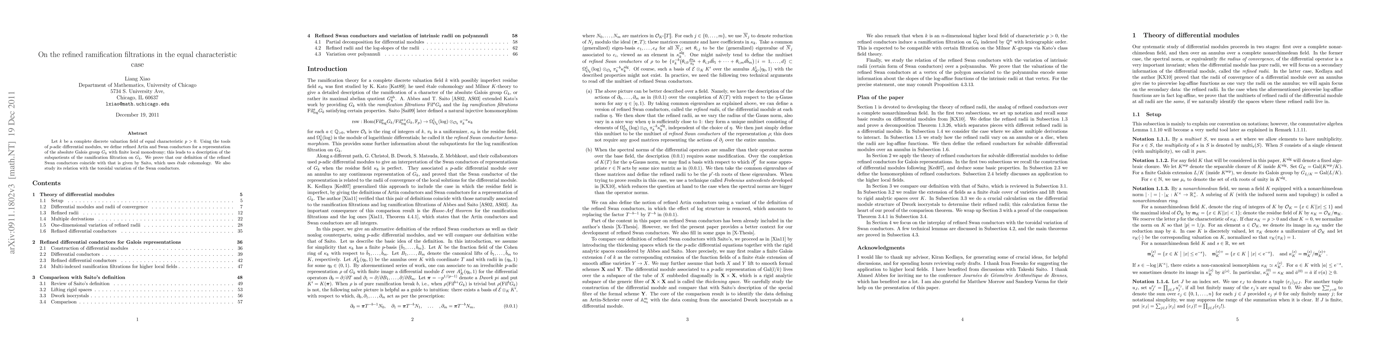 This paper introduces refined Artin and Swan conductors for representations of the Galois group of a complete discrete valuation field of equal characteristic using p-adic differential modules. It proves the equivalence of these refined Swan conductors with those defined by Saito via étale cohomology and explores their relationship with toroidal variations.