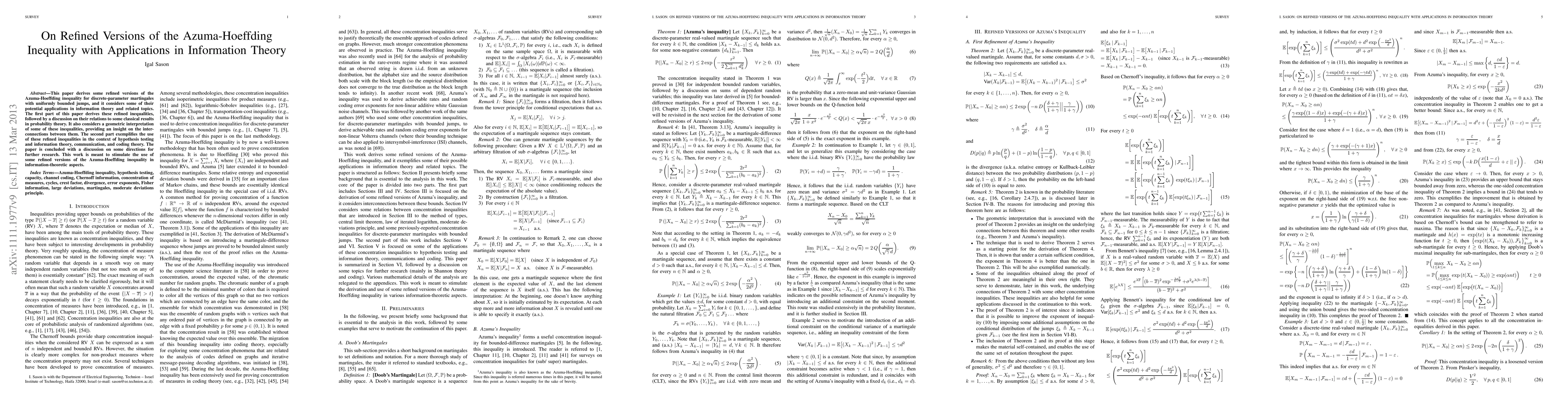 This paper presents refined versions of the Azuma-Hoeffding inequality, offering improved bounds with applications in information theory. It includes original results and evolved into a joint work with Maxim Raginsky.