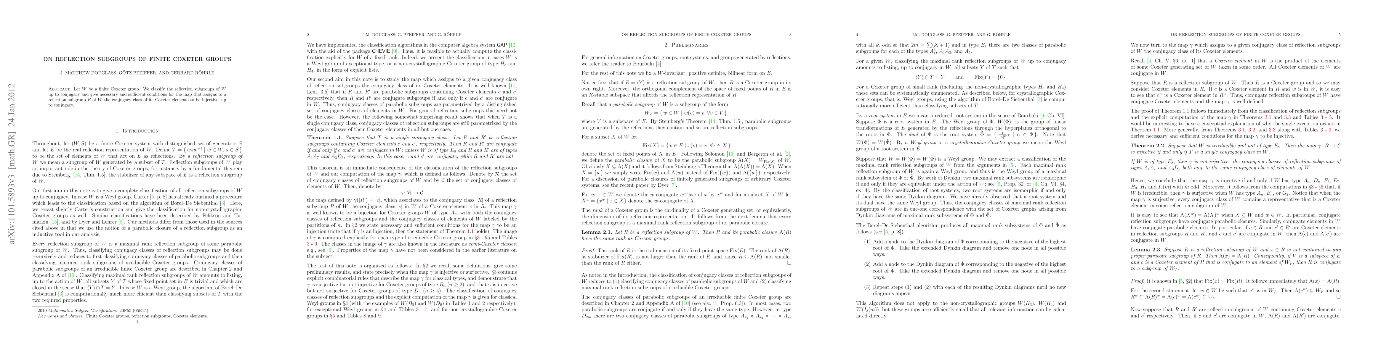 This paper classifies reflection subgroups of finite Coxeter groups up to conjugacy and provides necessary and sufficient conditions for the injective map between reflection subgroups and their Coxeter elements.