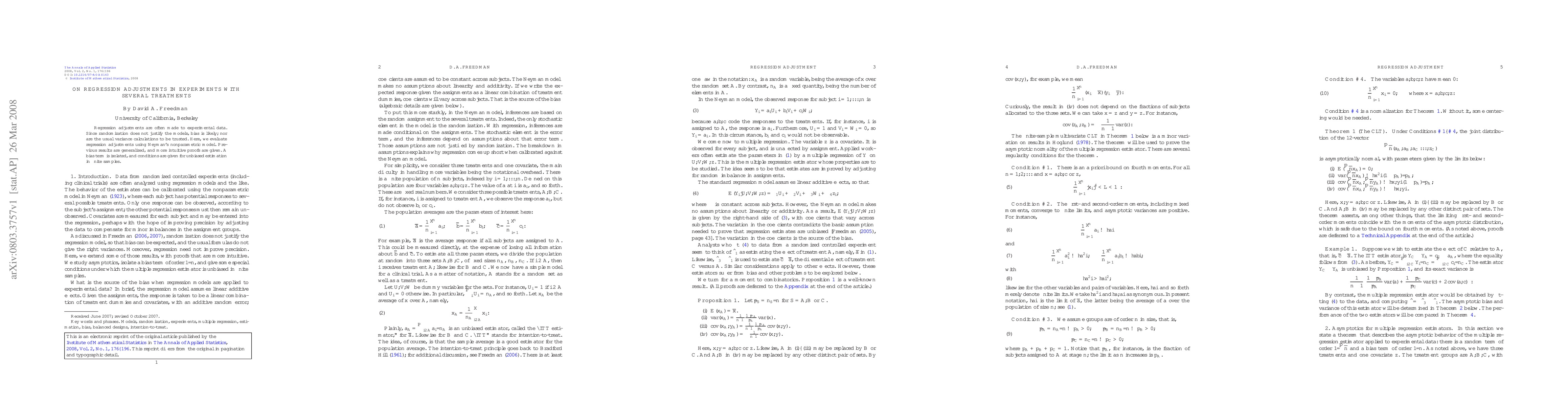 This paper evaluates regression adjustments in experiments with multiple treatments, using Neyman's nonparametric model to generalize previous results and provide more intuitive proofs. It isolates a bias term and establishes conditions for unbiased estimation in finite samples.