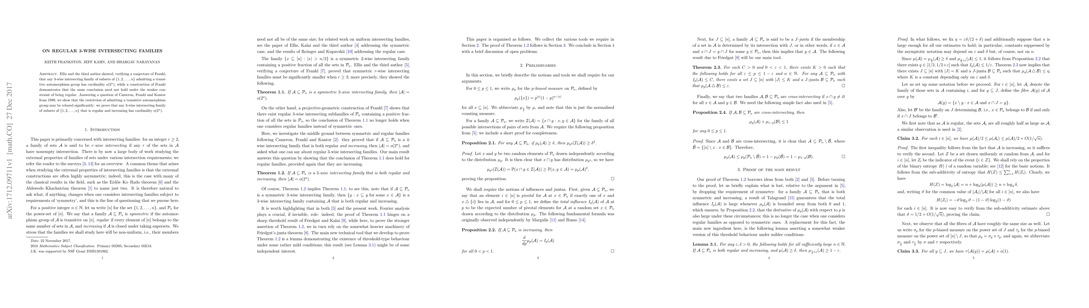 Ellis and the third author showed, verifying a conjecture of Frankl, that any $3$-wise intersecting family of subsets of $\{1,2,\dots,n\}$ admitting a transitive automorphism group has cardinality $o(2^n)$, while a construction of Frankl demonstrates that the same conclusion need not hold under the weaker constraint of being regular. Answering a question of Cameron, Frankl and Kantor from 1989, we show that the restriction of admitting a transitive automorphism group may be relaxed significantly: we prove that any $3$-wise intersecting family of subsets of $\{1,2,\dots,n\}$ that is regular and increasing has cardinality $o(2^n)$.