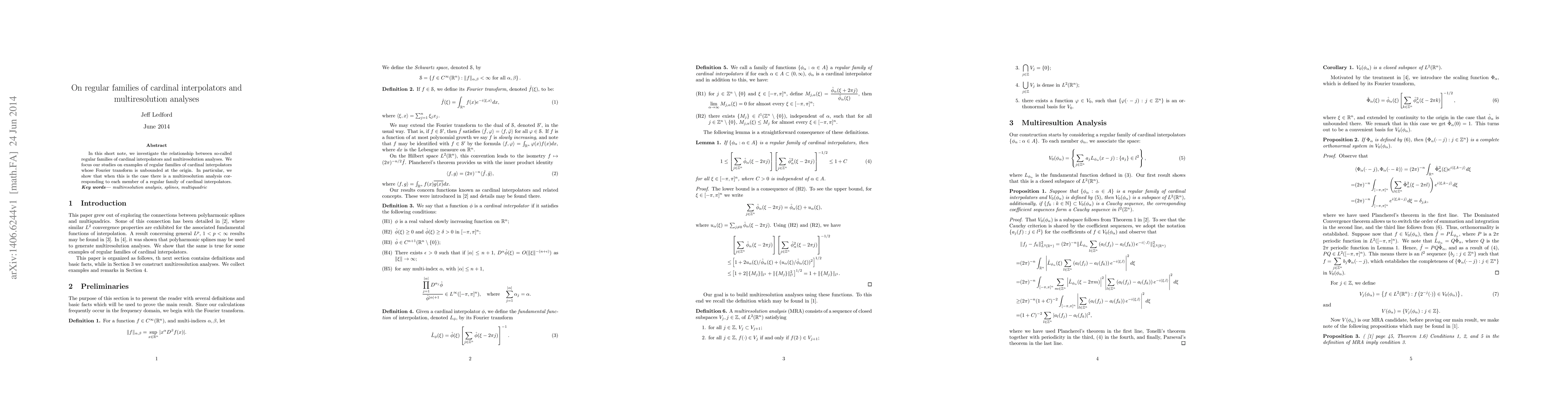 This paper explores the connection between regular families of cardinal interpolators and multiresolution analyses, particularly focusing on cases where the Fourier transform of these interpolators is unbounded at the origin. It demonstrates that such a condition allows for a multiresolution analysis corresponding to each member of the regular family.