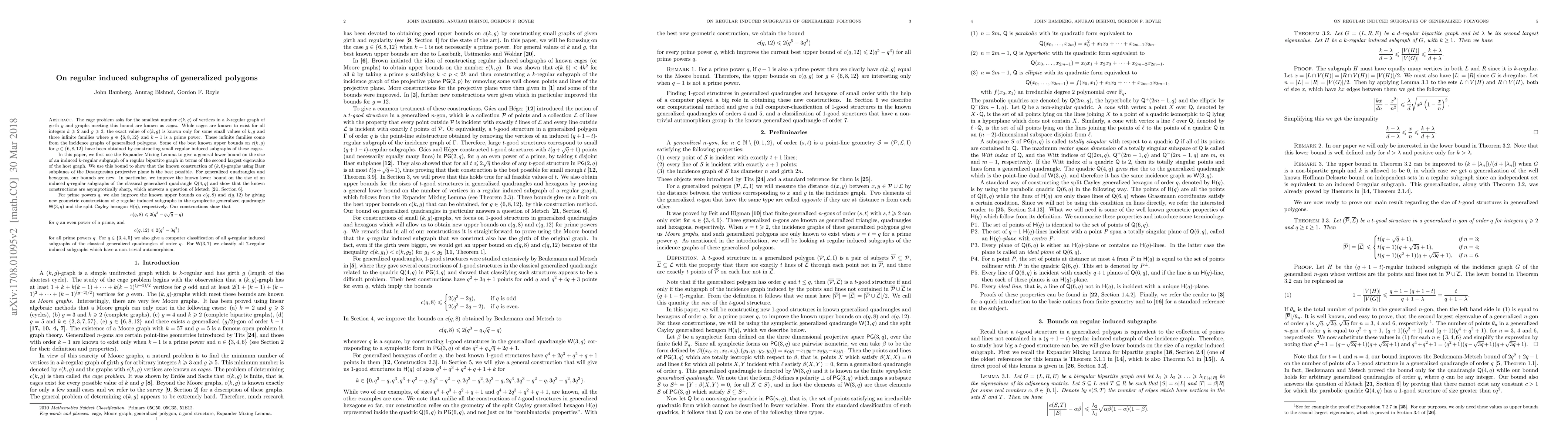This paper investigates the cage problem for $k$-regular graphs with girth $g$, focusing on regular induced subgraphs of generalized polygons. It establishes new lower bounds for $k$-regular induced subgraphs in generalized quadrangles and hexagons, and provides improved upper bounds for $q$-regular induced subgraphs in specific generalized polygons, offering new geometric constructions.