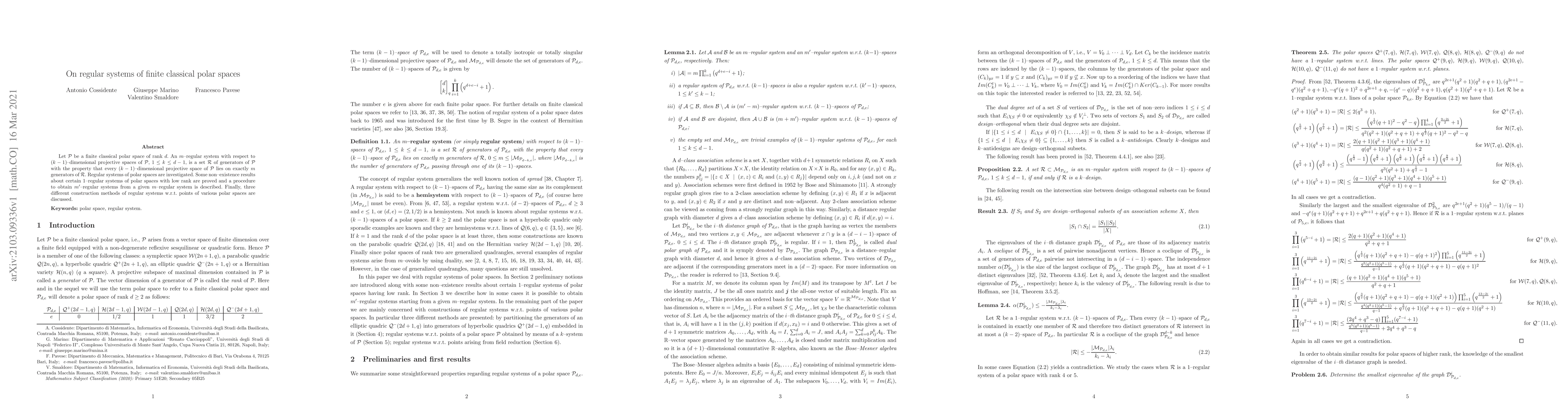 This paper investigates regular systems of finite classical polar spaces, focusing on sets of generators where each $(k - 1)$-dimensional projective space intersects exactly $m$ generators. It proves non-existence results for certain low-rank 1-regular systems and describes a method for deriving $m'$-regular systems from existing $m$-regular systems. Additionally, it explores three construction methods for regular systems based on points in various polar spaces.