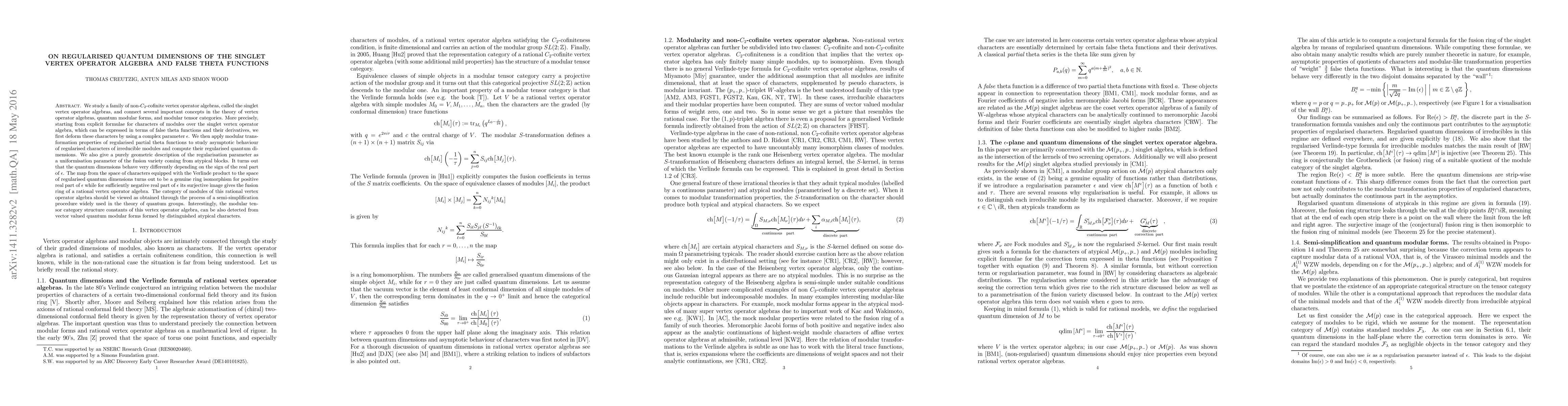 This research paper explores the properties of singlet vertex operator algebras, connecting concepts in vertex operator algebras, quantum modular forms, and modular tensor categories through the study of regularised characters and their derivatives.
