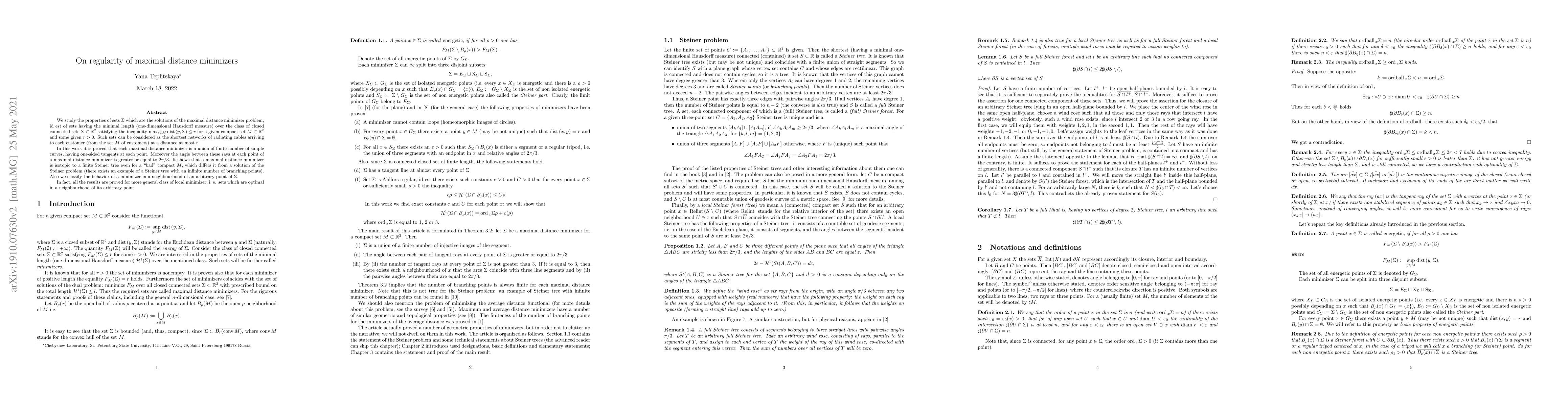 This paper investigates the regularity properties of sets that minimize maximal distances within a given constraint, proving they are composed of a finite number of simple curves with one-sided tangents and angles between rays of at least $2\pi/3$. It demonstrates these sets are isotopic to finite Steiner trees, even for "bad" compact sets.