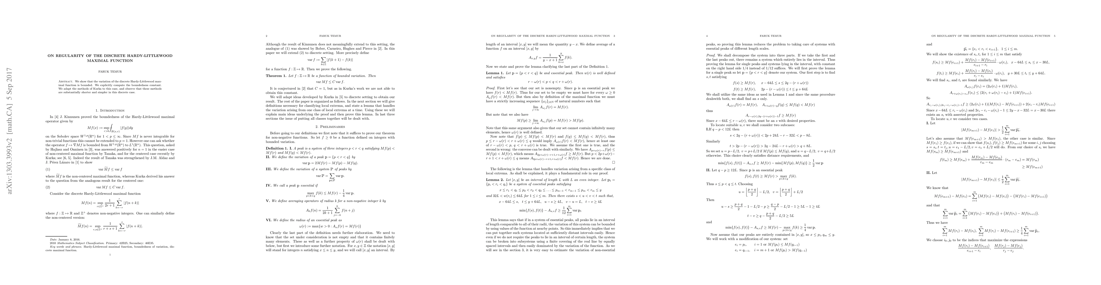 Summary: This paper extends Kurka's boundedness result for the Hardy-Littlewood maximal function to a discrete setting, establishing its regularity in this context.