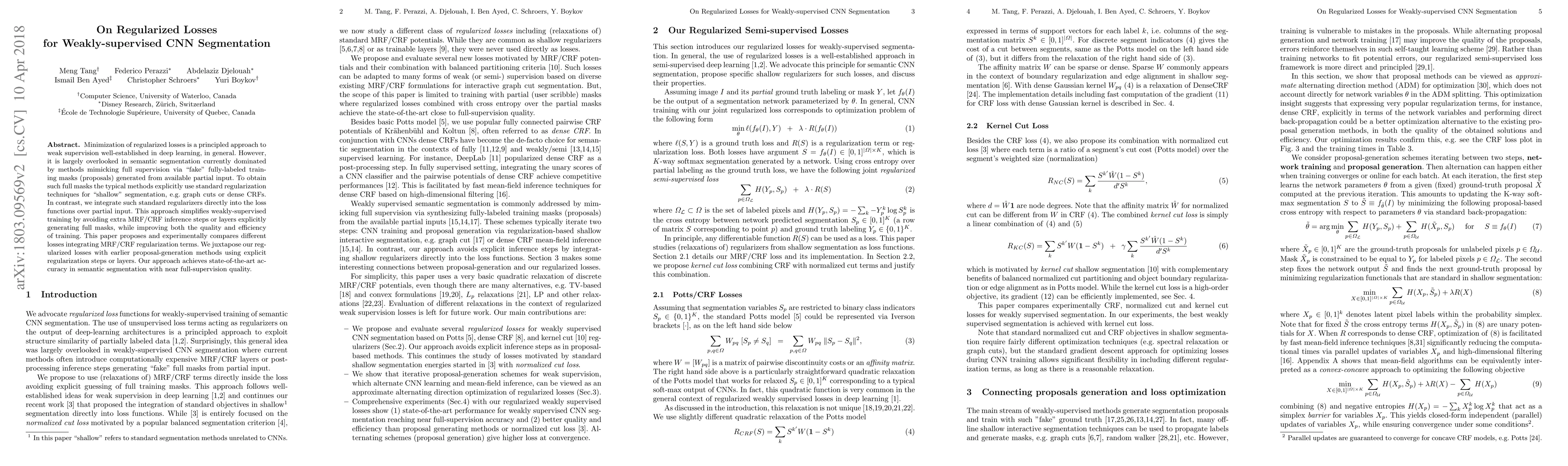 This paper proposes integrating standard regularization techniques directly into the loss functions for weakly-supervised CNN segmentation, simplifying training and improving accuracy compared to methods that generate "fake" fully-labeled training masks. The approach achieves state-of-the-art results in semantic segmentation.
