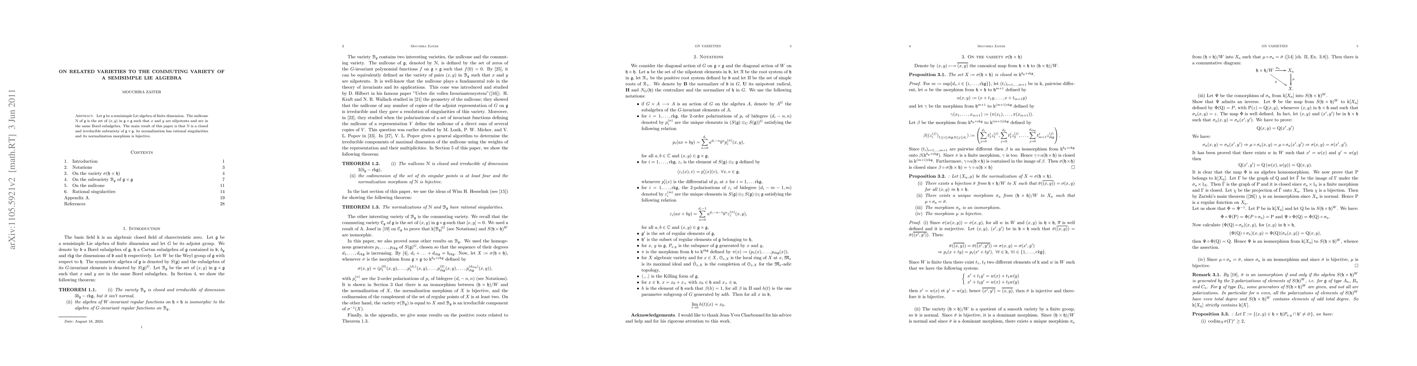 Let g be a semisimple Lie algebra of finite dimension. The nullcone N of g is the set of (x,y) in g x g such that x and y are nilpotents and are in the same Borel sualgebra. The main result of this paper is that N is a closed and irreducible subvariety of g x g, its normalisation has rational singularities and its normalization morphism is bijective.