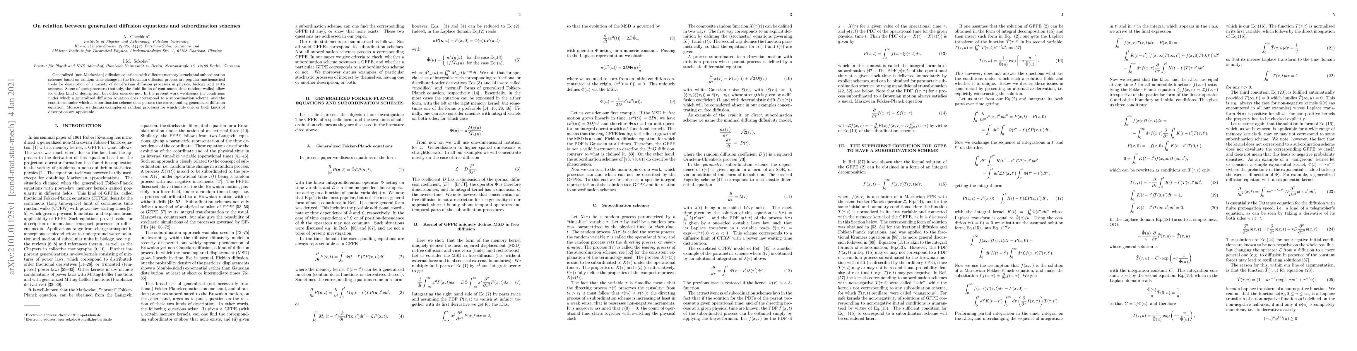 This paper explores the relationship between generalized diffusion equations and subordination schemes, focusing on non-Markovian processes in physics, biology, and earth sciences. It identifies conditions for when a generalized diffusion equation corresponds to a subordination scheme and vice versa, providing examples of processes that fit either or both descriptions.