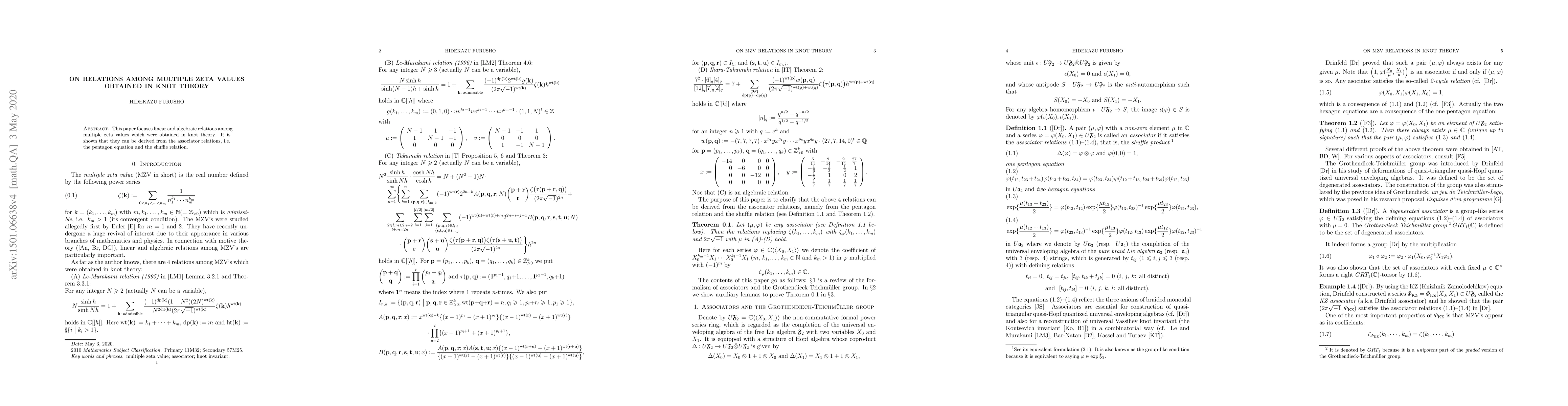 This paper explores the linear and algebraic connections among multiple zeta values derived from knot theory, demonstrating that these relations stem from associator relations, specifically the pentagon equation and the shuffle relation.