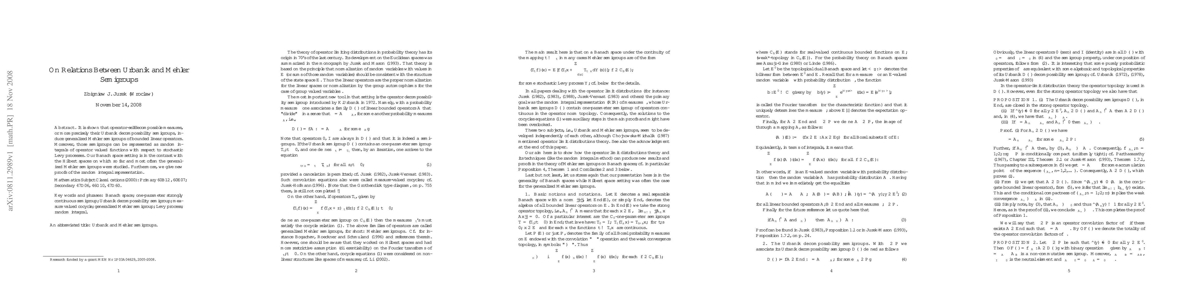 This paper demonstrates that Urbanik decomposability semigroups derived from operator-selfdecomposable measures generate generalized Mehler semigroups in Banach spaces, contrasting with the traditional Hilbert space setting. It also provides new proofs for the random integral representation of these semigroups via stochastic Lévy processes.