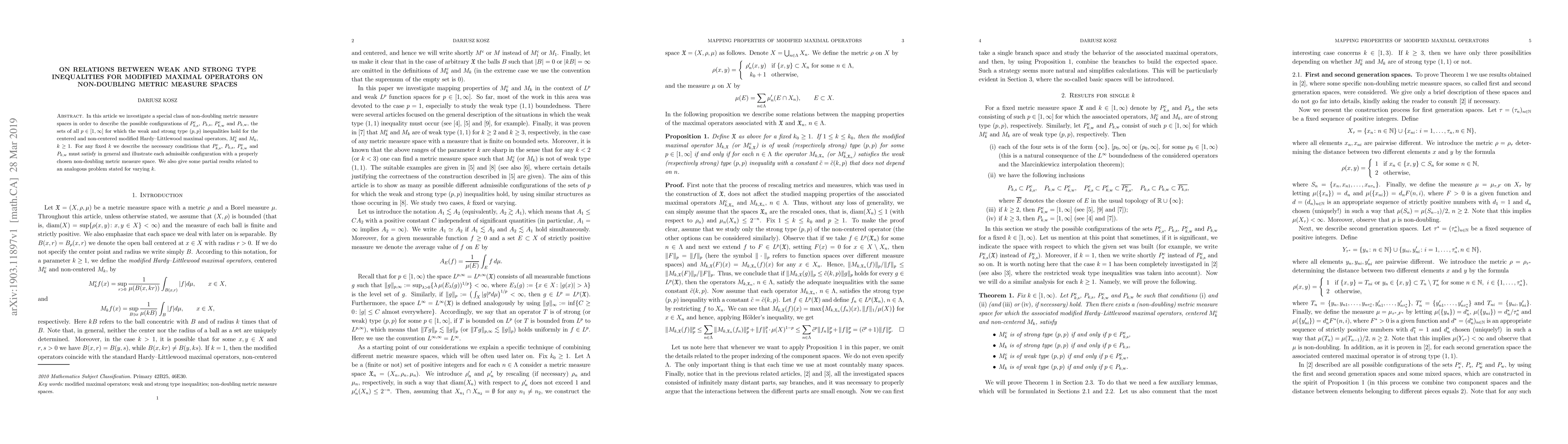 This paper explores weak and strong type inequalities for modified maximal operators on non-doubling metric measure spaces, identifying necessary conditions for various sets of $p$ values and illustrating configurations with specific examples. It also provides partial results for cases where the operator index varies.