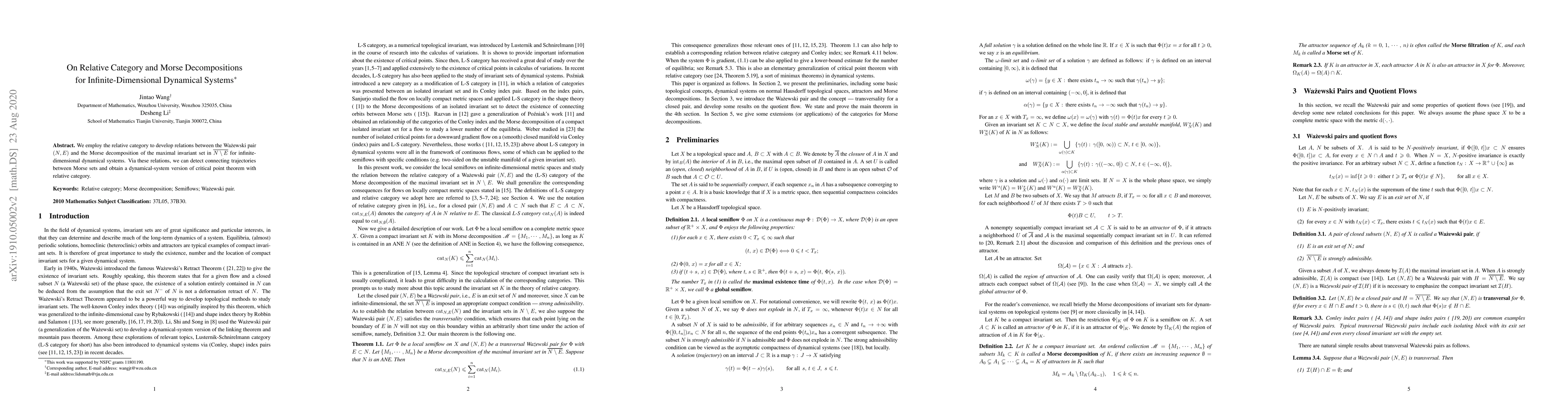 We employ the relative category to develop relations between the Wa\.zewski pair $(N,E)$ and the Morse decomposition of the maximal invariant set in $\ol{N\sm E}$ for infinite-dimensional dynamical systems. Via these relations, we can detect connecting trajectories between Morse sets and obtain a dynamical-system version of critical point theorem with relative category.