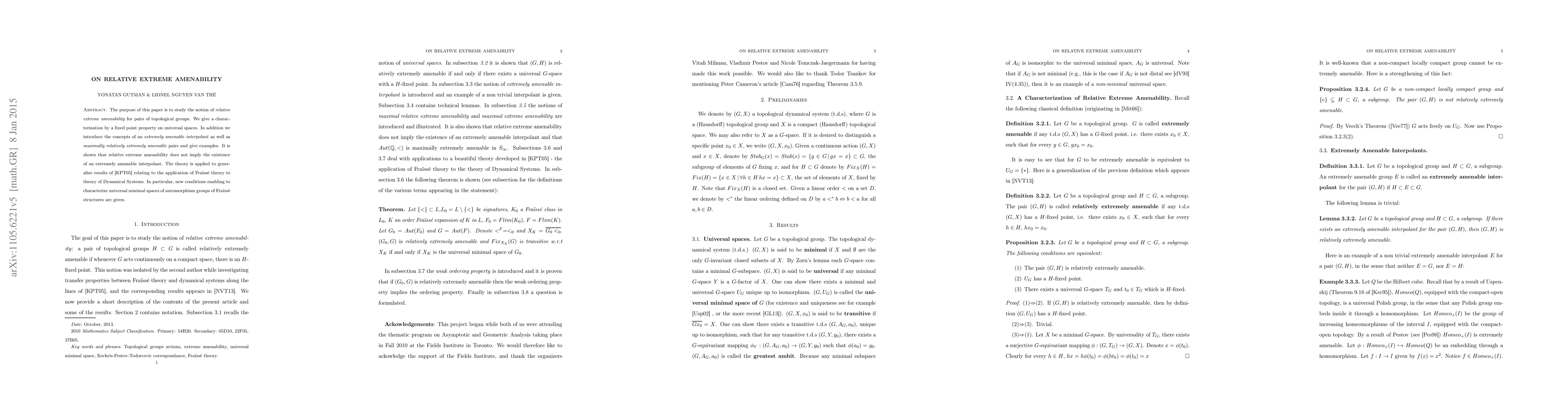 This paper investigates the concept of relative extreme amenability for pairs of topological groups, characterized by a fixed point property on universal spaces. It introduces extremely amenable interpolants and maximally relatively extremely amenable pairs, but notes that relative extreme amenability does not guarantee the existence of such interpolants, and applies the theory to generalize results from Fraissé theory in dynamical systems.