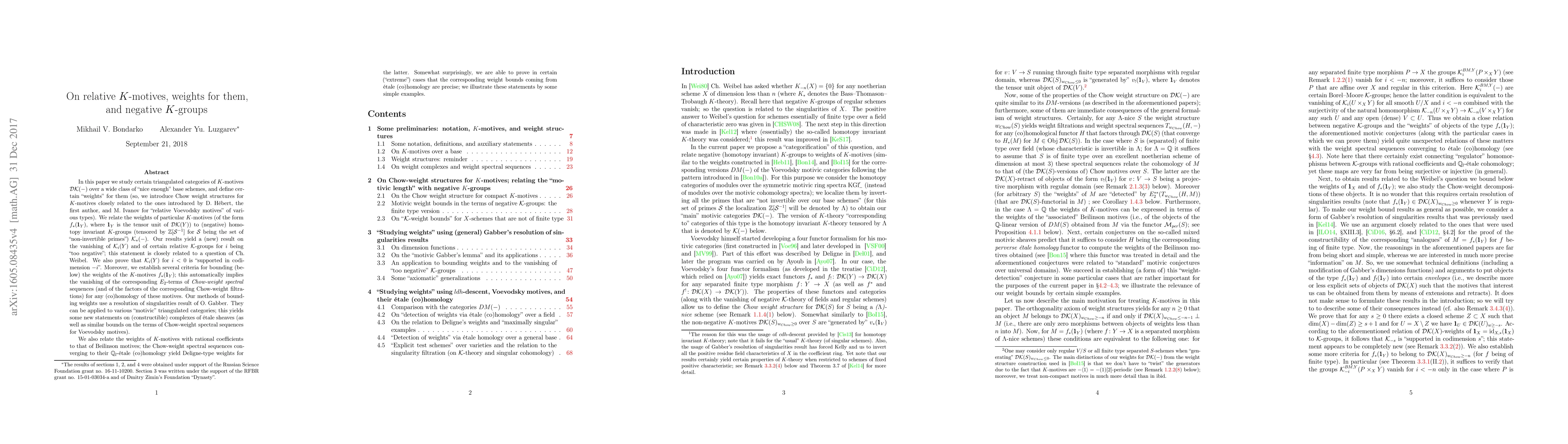 This paper explores triangulated categories of $K$-motives and introduces "weights" for them, relating these weights to negative $K$-groups. It proves results on the vanishing of certain $K$-groups and establishes criteria for bounding the weights of specific motives, with applications to motivic triangulated categories and \'etale sheaves. It also connects weights in $K$-motives with rational coefficients to those in Beilinson motives, yielding Deligne-type weights.