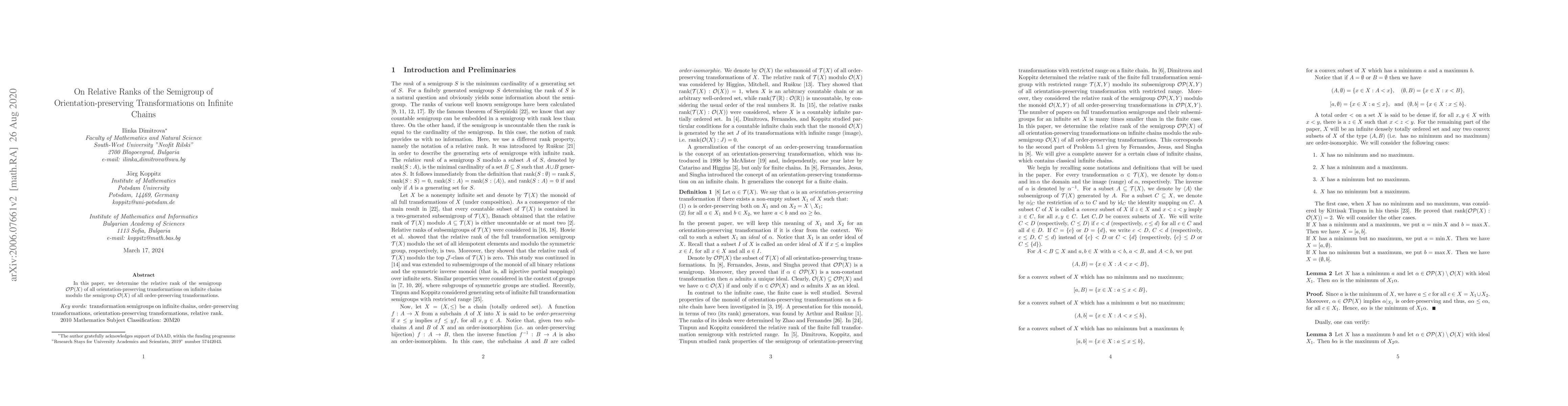 This paper determines the relative rank of the semigroup OP(X) of orientation-preserving transformations on infinite chains, compared to the semigroup O(X) of all order-preserving transformations, revealing structural properties of these transformations.