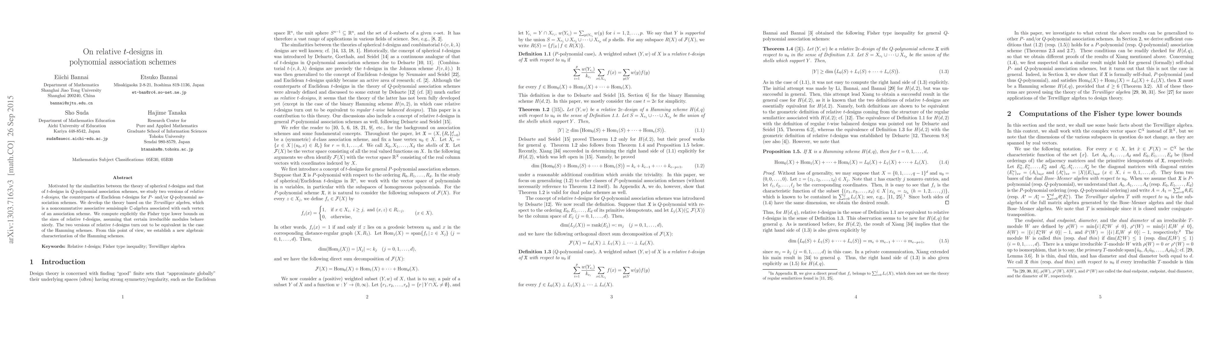 This paper explores relative $t$-designs in $P$- and/or $Q$-polynomial association schemes, developing a theory based on the Terwilliger algebra. It establishes Fisher type lower bounds for relative $t$-design sizes and finds equivalence in the Hamming schemes, leading to a new algebraic characterization.