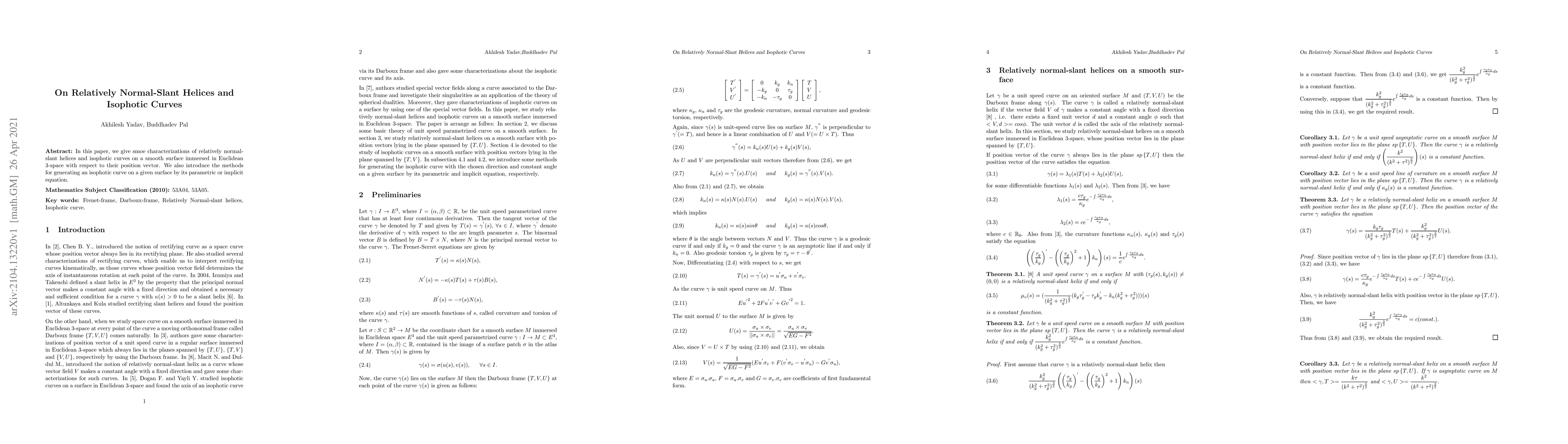 This paper characterizes relatively normal-slant helices and isophotic curves on surfaces in Euclidean 3-space, and presents methods for generating isophotic curves from parametric or implicit surface equations.