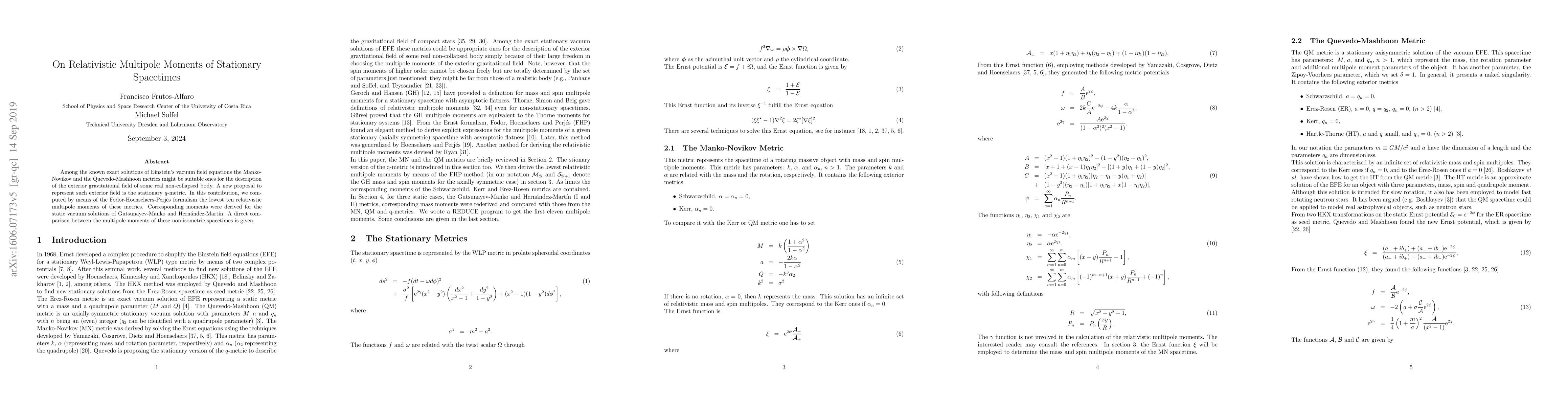 Researchers computed relativistic multipole moments of two spacetime metrics, the Manko-Novikov and Quevedo-Mashhoon metrics, using a formalism called Fodor-Hoenselaers-Perjes. The study provides new insights into the gravitational field around non-collapsed bodies.