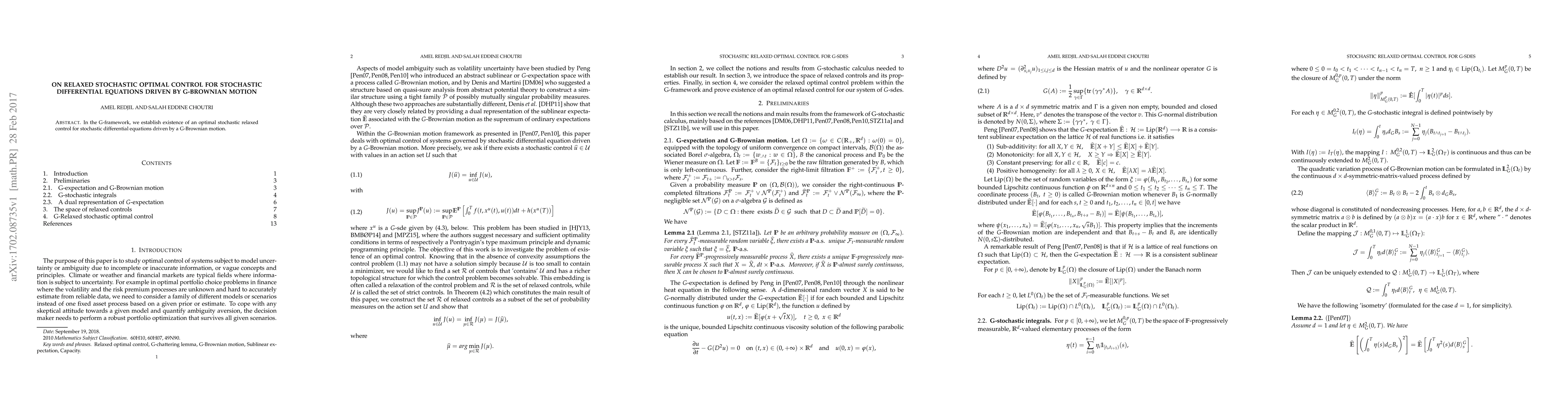 This paper establishes the existence of an optimal stochastic relaxed control for stochastic differential equations driven by G-Brownian motion within the G-framework. The results contribute to the theory of relaxed stochastic optimal control.