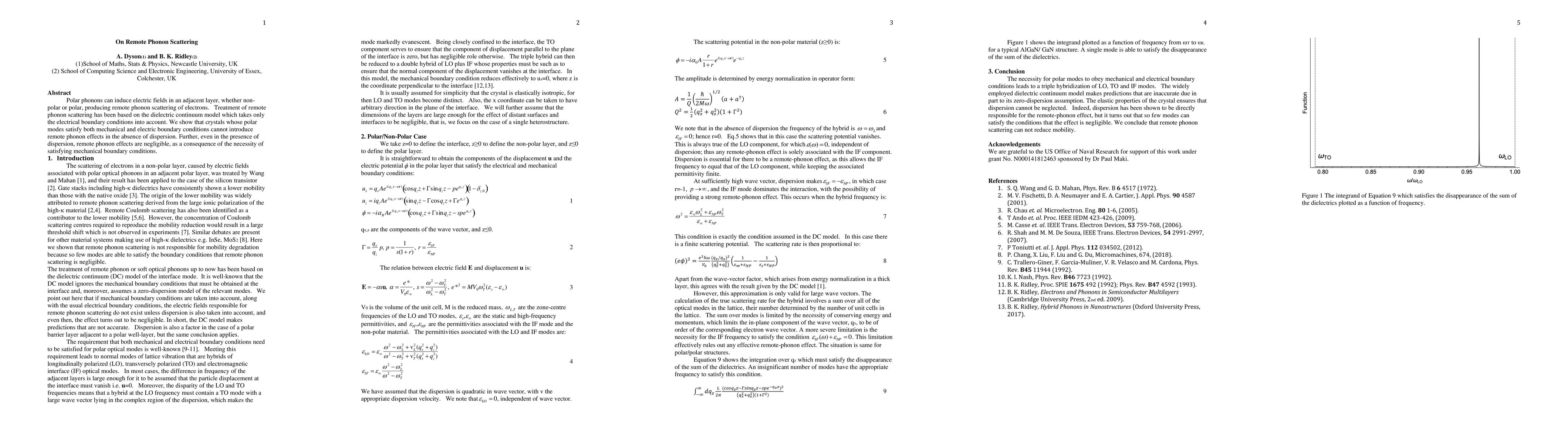 Polar phonons can induce electric fields in an adjacent layer, whether non-polar or polar, producing remote phonon scattering of electrons. Treatment of remote phonon scattering has been based on the dielectric continuum model which takes only the electrical boundary conditions into account. We show that crystals whose polar modes satisfy both mechanical and electric boundary conditions cannot introduce remote phonon effects in the absence of dispersion. Further, even in the presence of dispersion, remote phonon effects are negligible, as a consequence of the necessity of satisfying mechanical boundary conditions.