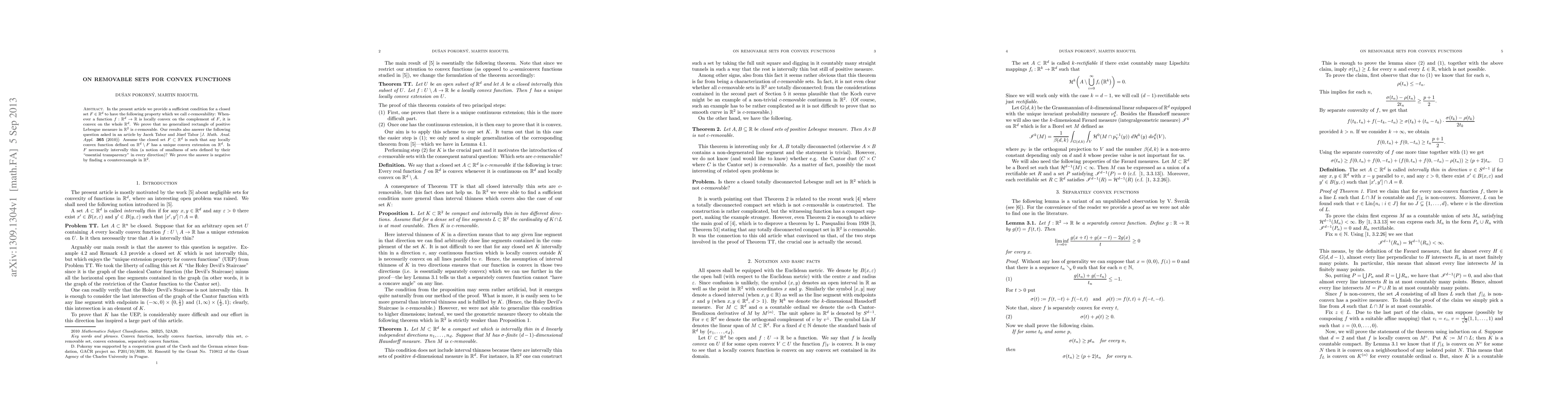 Researchers found a condition for sets to have removable properties on convex functions, disproving a related question about interval thinness in R^2.