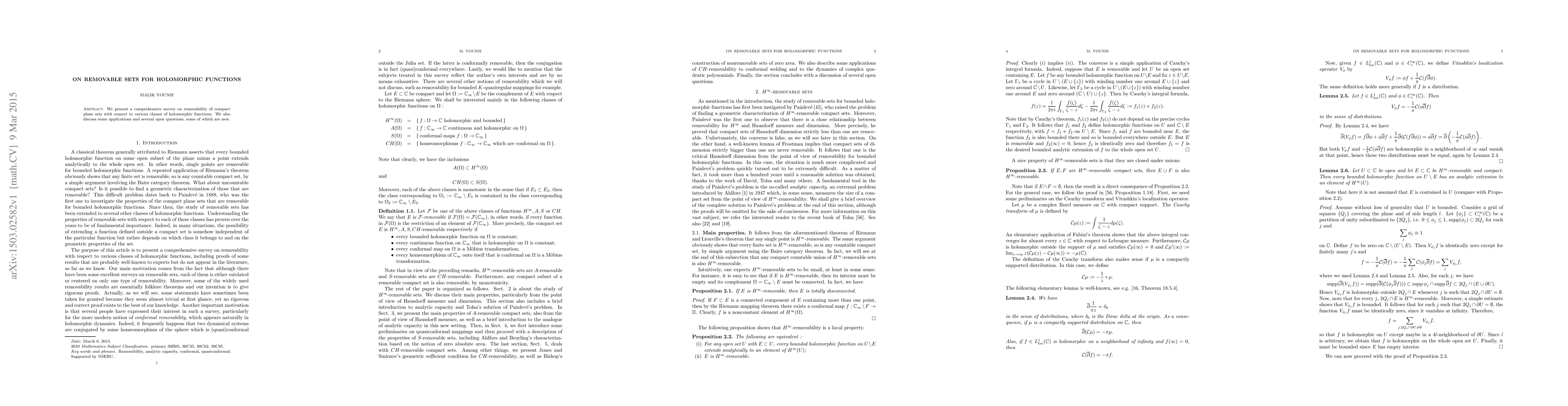 This paper surveys the concept of removable sets for compact plane sets concerning different classes of holomorphic functions, and explores applications and open questions, some of which are newly proposed.