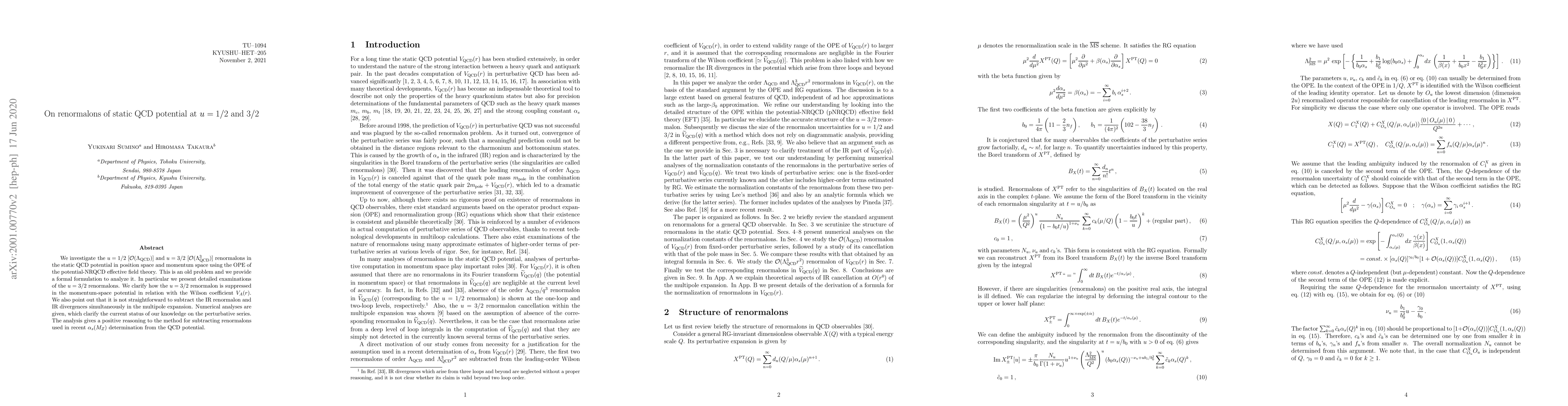 This paper investigates the $u=1/2$ and $u=3/2$ renormalons in the static QCD potential, providing a formal analysis and clarifying the suppression of $u=3/2$ renormalons in momentum-space potentials. It also discusses the challenges in subtracting infrared renormalons and divergences.