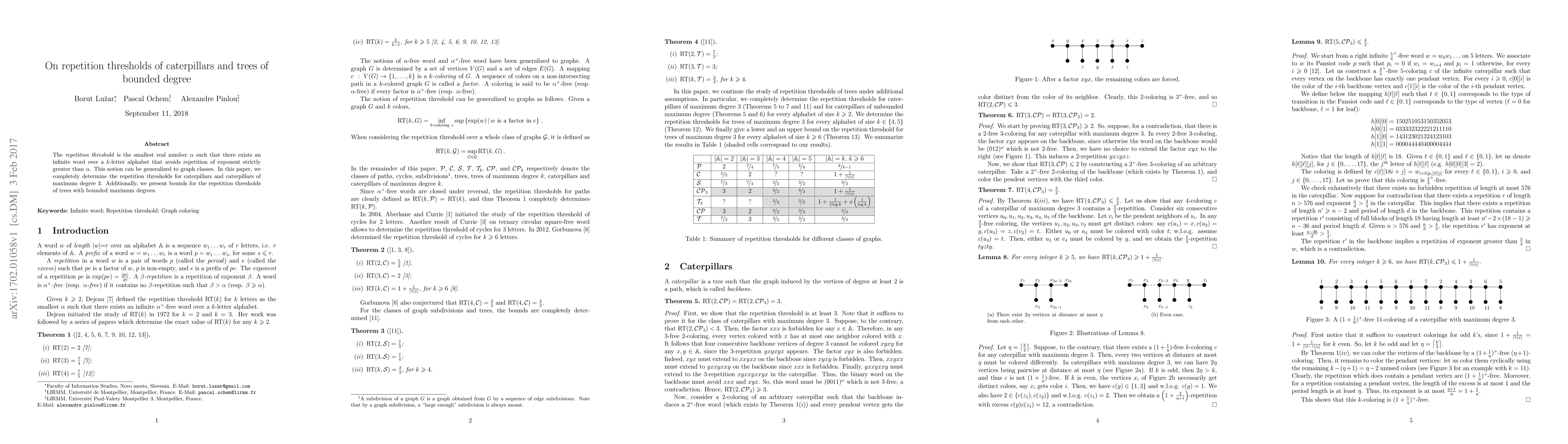 This paper determines the repetition thresholds for caterpillars and trees of maximum degree 3, and provides bounds for the repetition thresholds of trees with bounded maximum degrees. The repetition threshold is the smallest number ensuring an infinite word avoids repetitions of exponent exceeding this value.