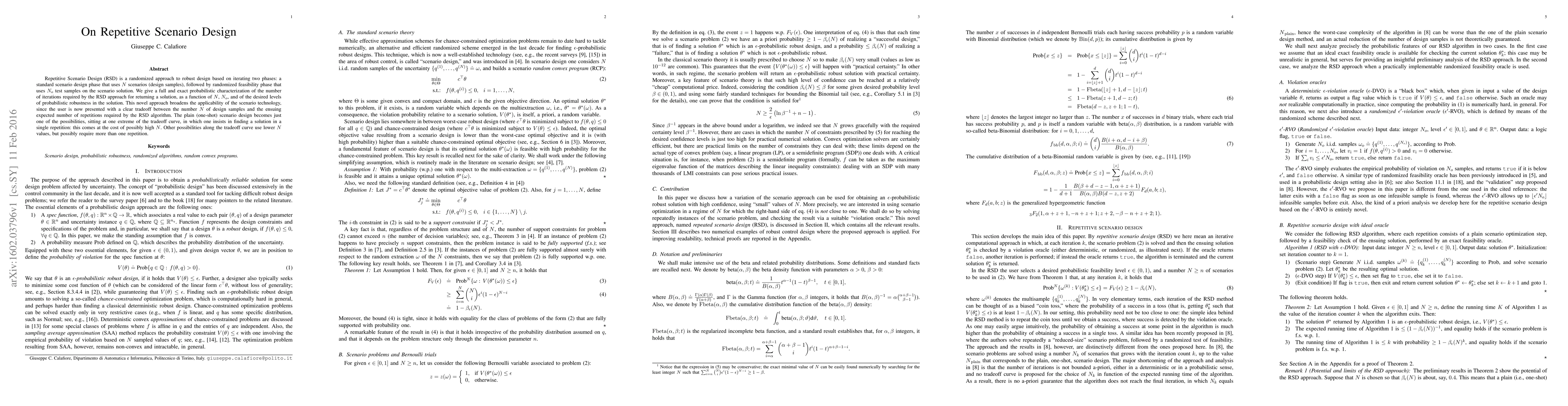 This paper introduces Repetitive Scenario Design, a method for robust design that balances between scenario diversity (N) and repetition count (N_o), offering a tradeoff curve for finding solutions with desired probabilistic robustness.