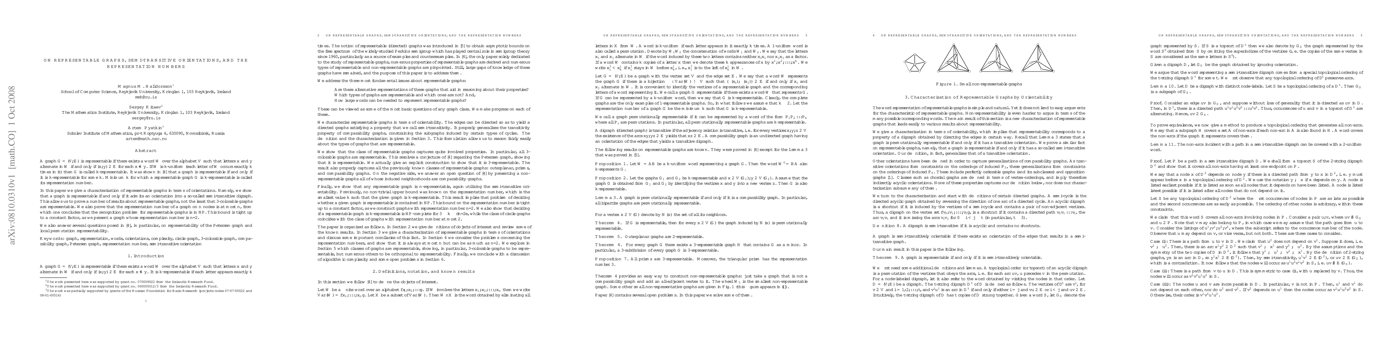 This paper characterizes representable graphs through semi-transitive orientations, proving that such graphs are representable if and only if they can be oriented into a semi-transitive digraph. It establishes that the representation number of a graph is at most its number of nodes, and provides a tight bound for certain graphs.