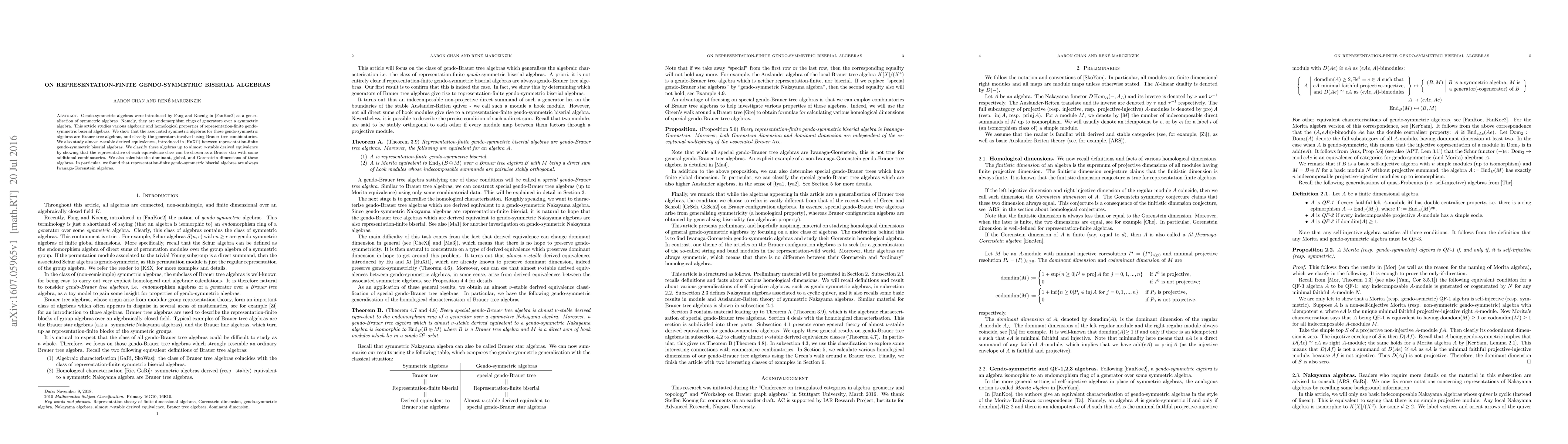 This paper studies representation-finite gendo-symmetric biserial algebras, showing they correspond to Brauer tree algebras and classifying their generators. It classifies these algebras under almost ν-stable derived equivalences and determines their dimensions, concluding they are always Iwanaga-Gorenstein algebras.