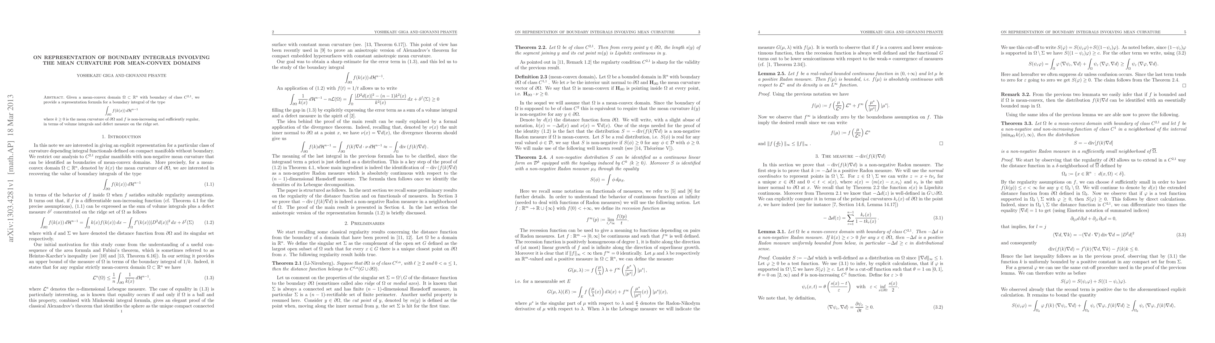 Researchers developed a representation formula for boundary integrals involving mean curvature on mean-convex domains in n-dimensional space. They provided an integral representation of such boundary integrals using volume integrals and defect measures.