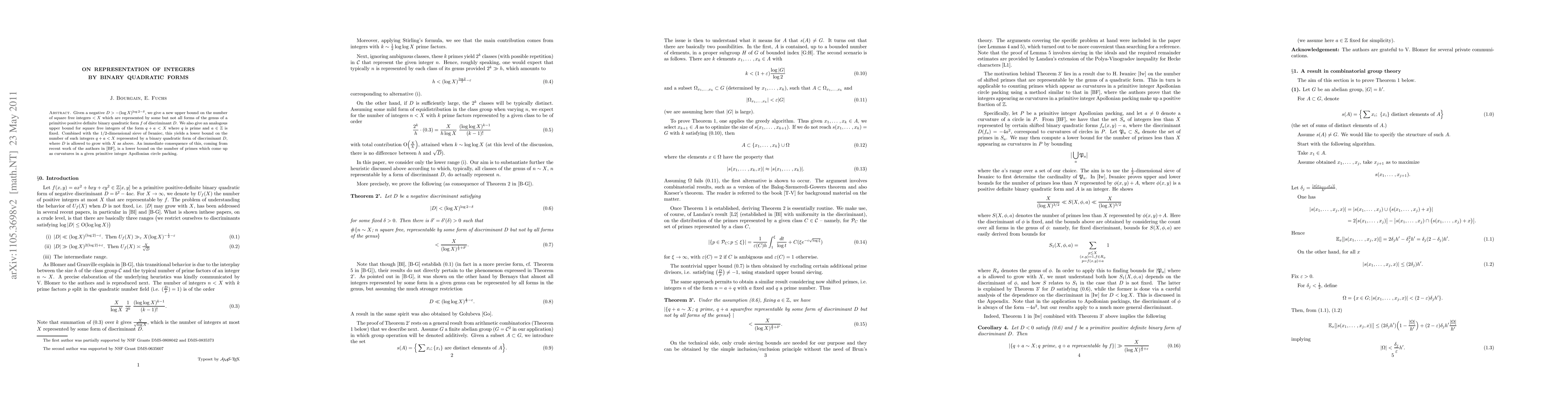This paper provides new upper bounds on the number of square-free integers represented by certain binary quadratic forms, and combines these with Iwaniec's sieve to derive lower bounds for integers of the form $q+a$, leading to implications for primes in integer Apollonian circle packings.