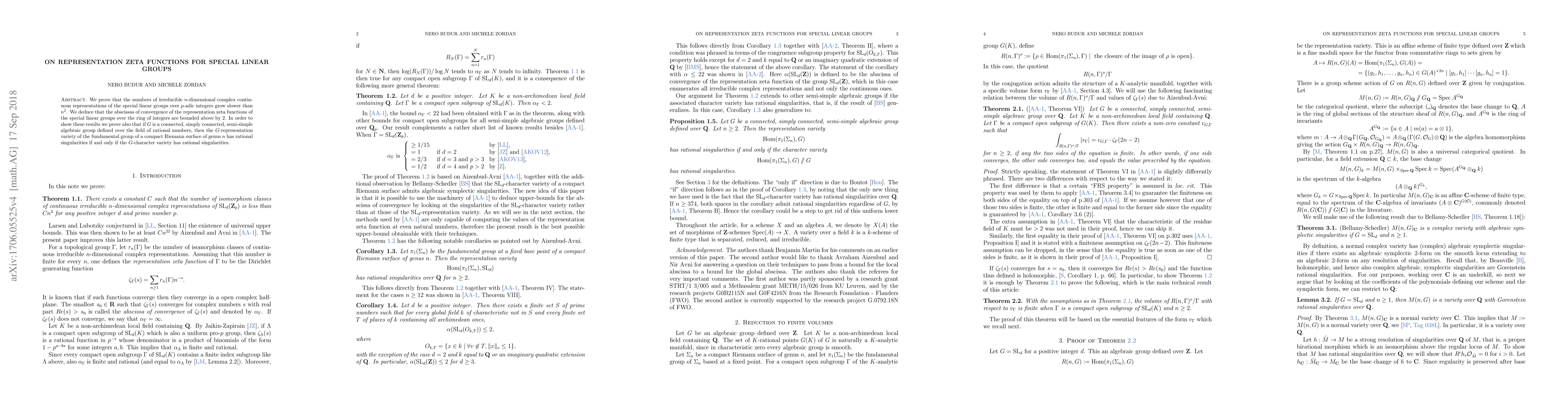 Researchers prove that special linear groups have representation zeta functions with convergence abscissas bounded above by 2, indicating a slower growth rate of irreducible representations than the square of their dimension.