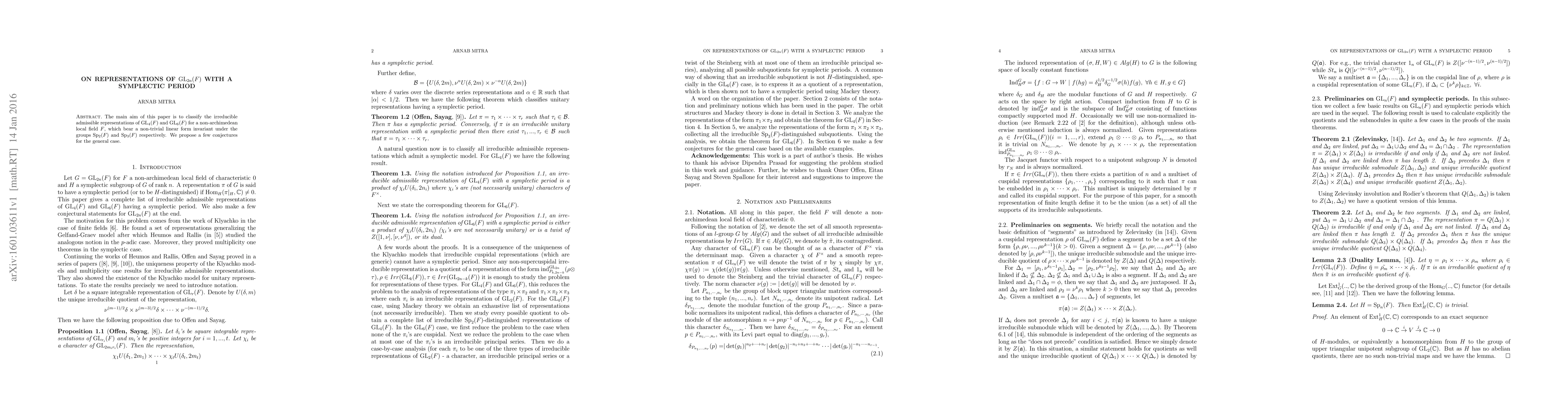 The main aim of this paper is to classify the irreducible admissible representations of ${\rm GL}_{4}(F)$ and ${\rm GL}_{6}(F)$ for a nonarchimedean local field $F$, which bear a nontrivial linear form invariant under the groups ${\rm Sp}_{4}(F)$ and ${\rm Sp}_{6}(F)$ respectively. We propose a few conjectures for the general case.