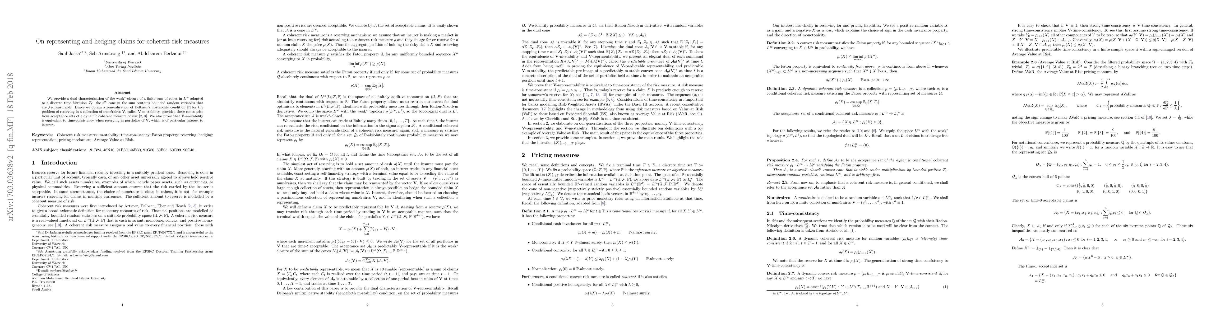 We provide a dual characterisation of the weak$^*$-closure of a finite sum of cones in $L^\infty$ adapted to a discrete time filtration $\mathcal{F}_t$: the $t^{th}$ cone in the sum contains bounded random variables that are $\mathcal{F}_t$-measurable. Hence we obtain a generalisation of Delbaen's m-stability condition for the problem of reserving in a collection of num\'eraires $\mathbf{V}$, called $\mathbf{V}$-m-stability, provided these cones arise from acceptance sets of a dynamic coherent measure of risk. We also prove that $\mathbf{V}$-m-stability is equivalent to time-consistency when reserving in portfolios of $\mathbf{V}$, which is of particular interest to insurers.
